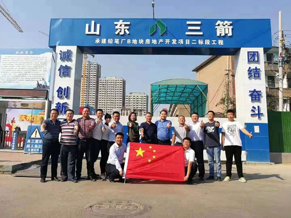 國慶期間,三箭股份公司領導班子成員及各項目公司經(jīng)理兵分兩路,先后到仁和家園、馨陽嘉苑項目、天馬相城、嵐橋大廈、糧食局食品產(chǎn)業(yè)園、齊魯工業(yè)大學實訓基地、和平廣場、瑞福廣場等在建重點工程進行走訪慰問,對節(jié)日期間仍堅守工作崗位的一線員工致以節(jié)日的問候和祝福。走訪前,為慶祝中華人民共和國成立70周年,股份公司領導班子成員及各項目公司經(jīng)理開展了“我與國旗合個影”活動,發(fā)自內(nèi)心地祝福偉大祖國國富民強、繁榮昌盛,集團公司蓬勃發(fā)展、再創(chuàng)輝煌。走訪期間,大家在項目上集中觀看了國慶閱兵式,并紛紛表示為閱兵式的豪邁盛大而震撼,為祖國強大而驕傲,抒發(fā)了愛國情懷。走訪期間,公司領導重點要求抓住近期這段建筑黃金季節(jié),合理安排工序,科學組織生產(chǎn),提前考慮揚塵、冬季施工、材料供應不及時等不利因素,確保工程按照計劃順利完成。